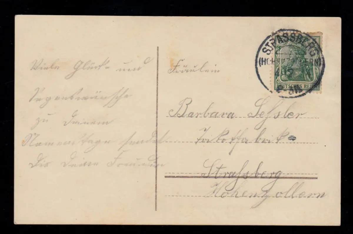 Carte postale locale avec cachet journalier STRASSBERG (HOHENZOLLERN) 4.12.1914 Vérification: original Référence produit: 00000000035145
