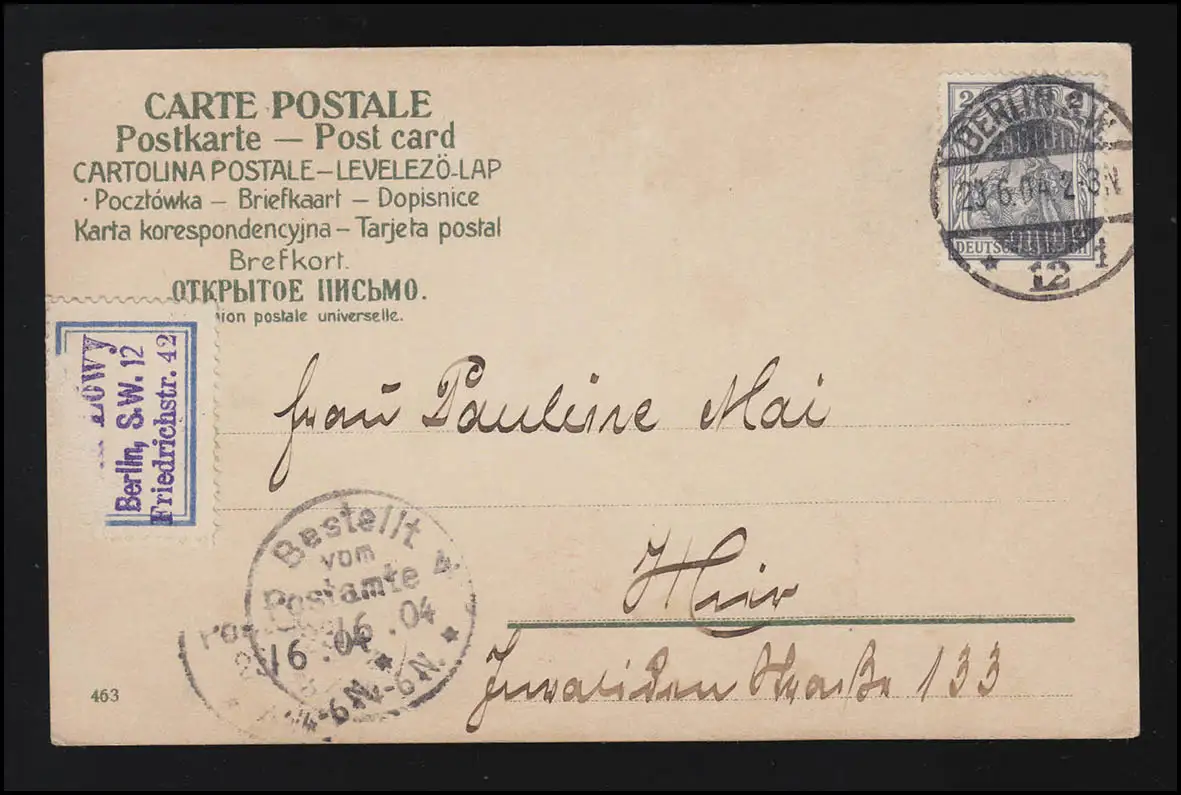 autocollants sous forme de timbres avec les coordonnées de l'expéditeur sur le dos de la carte. Examen: original Référence produit: 00000000035235