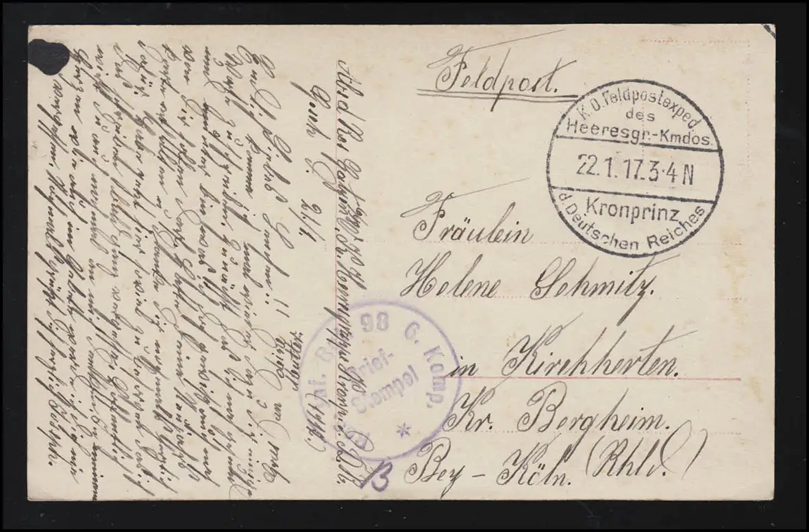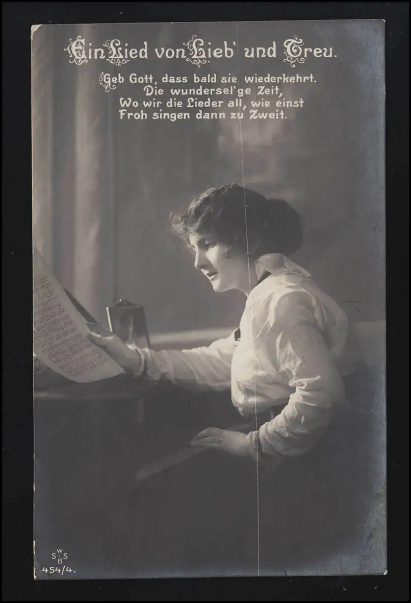 Femmes Photo AK Une chanson de l'amour et de la fidélité bureau lettre courrier 22.1.1917