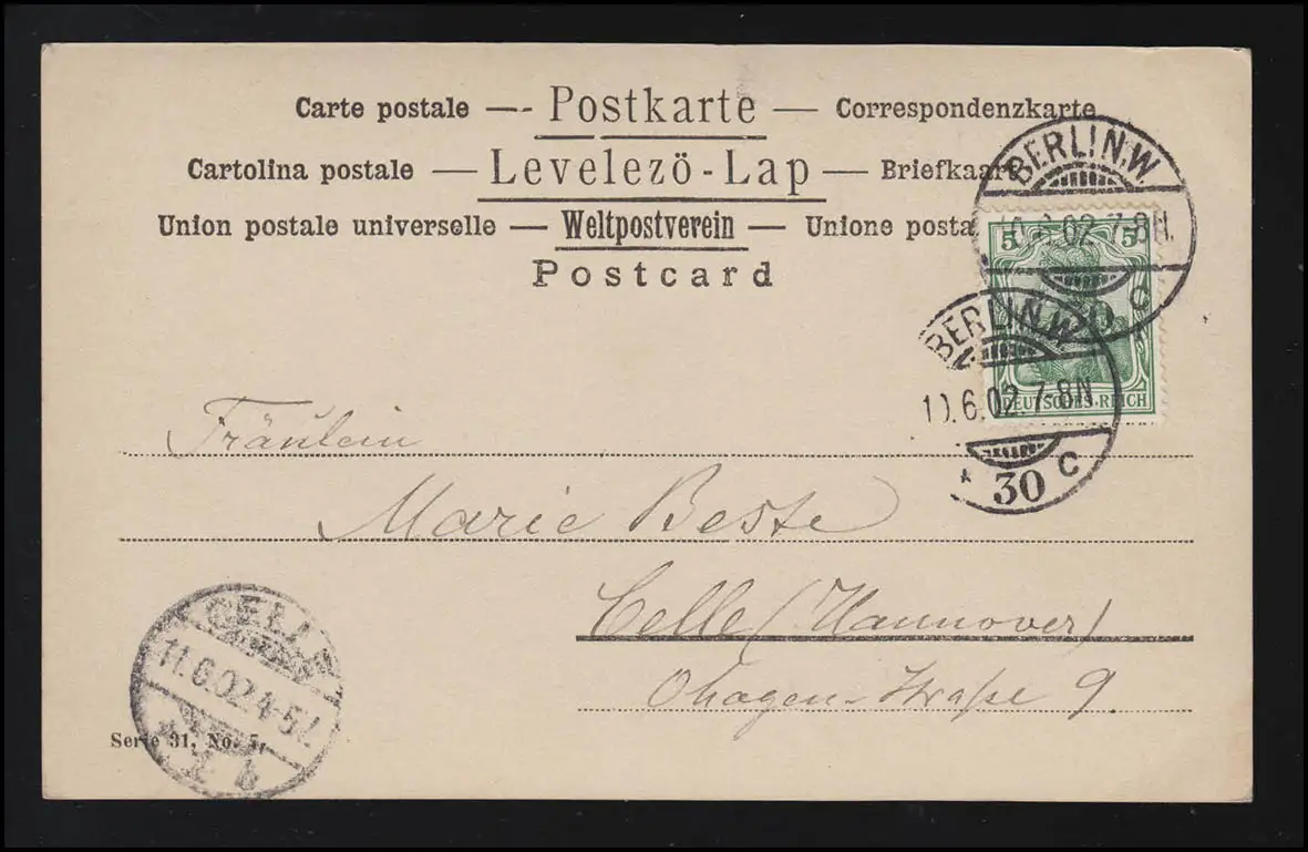 Femmes Photo AK jeune coquine boucles de coucou BERLIN/ CELLE 11.6.1902
