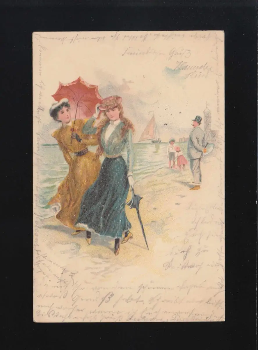 Femmes flâner berge Chapeau de protection Rhin voilier, Düsseldorf /Ruhrort 8.10.1900