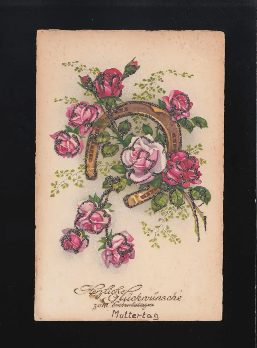 Fers à cheval avec roses rouges et roses, Félicitations Fête des Mères, étiquetés