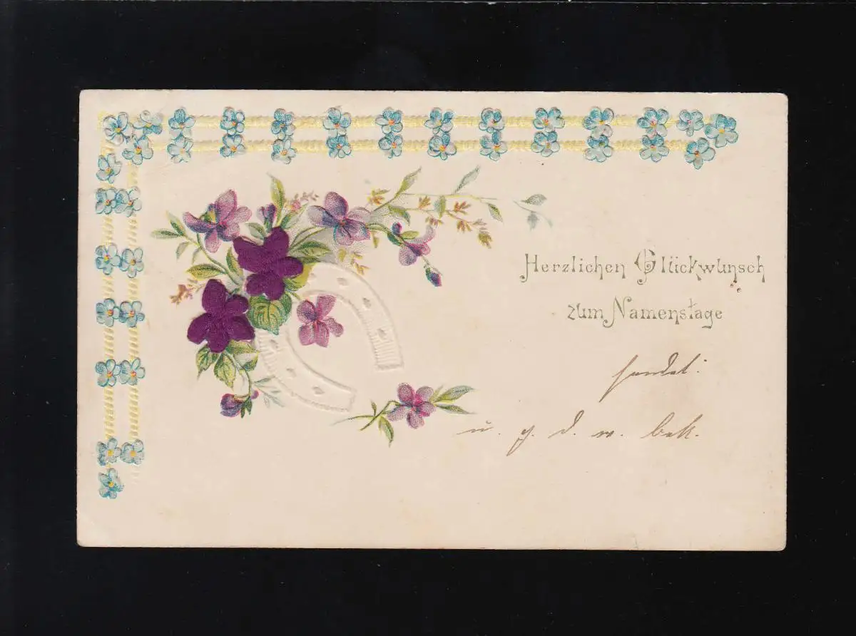 Fers à cheval avec violette Autruche Félicitations pour le jour du nom, Heinsberg 2.11.1901