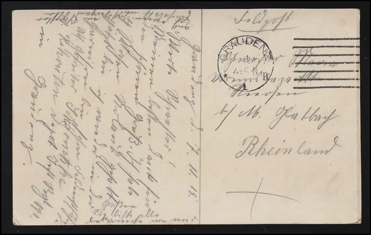 Fabrication de chocolats 1ère guerre mondiale Forteresse GRAUDENZ/ Grudziądz Feldpost 7.11.1915