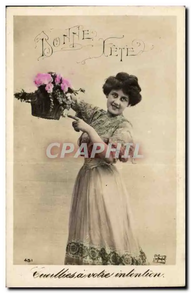 Fetes - Bonne Fete - Femme avec fleurs - Cartes postales