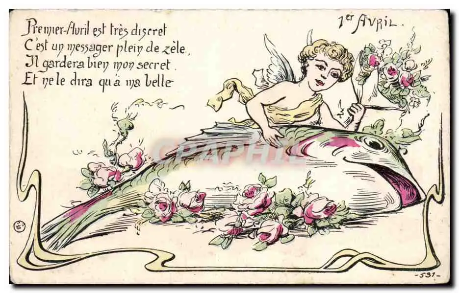 Fetes - Poisson d&#39Avril - April Fool&#39s Day - ange - angel - Cartes postales