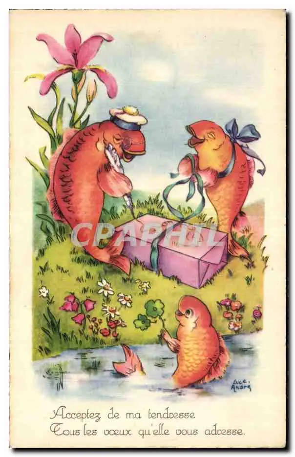Fetes - Voeux - Poisson d Avril - April Fool - fish opening gifts - Cartes postales
