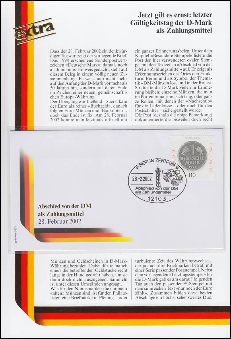 Fiche spéciale Dernière date de validité du D-Mark comme moyen de paiement 28.2.2002