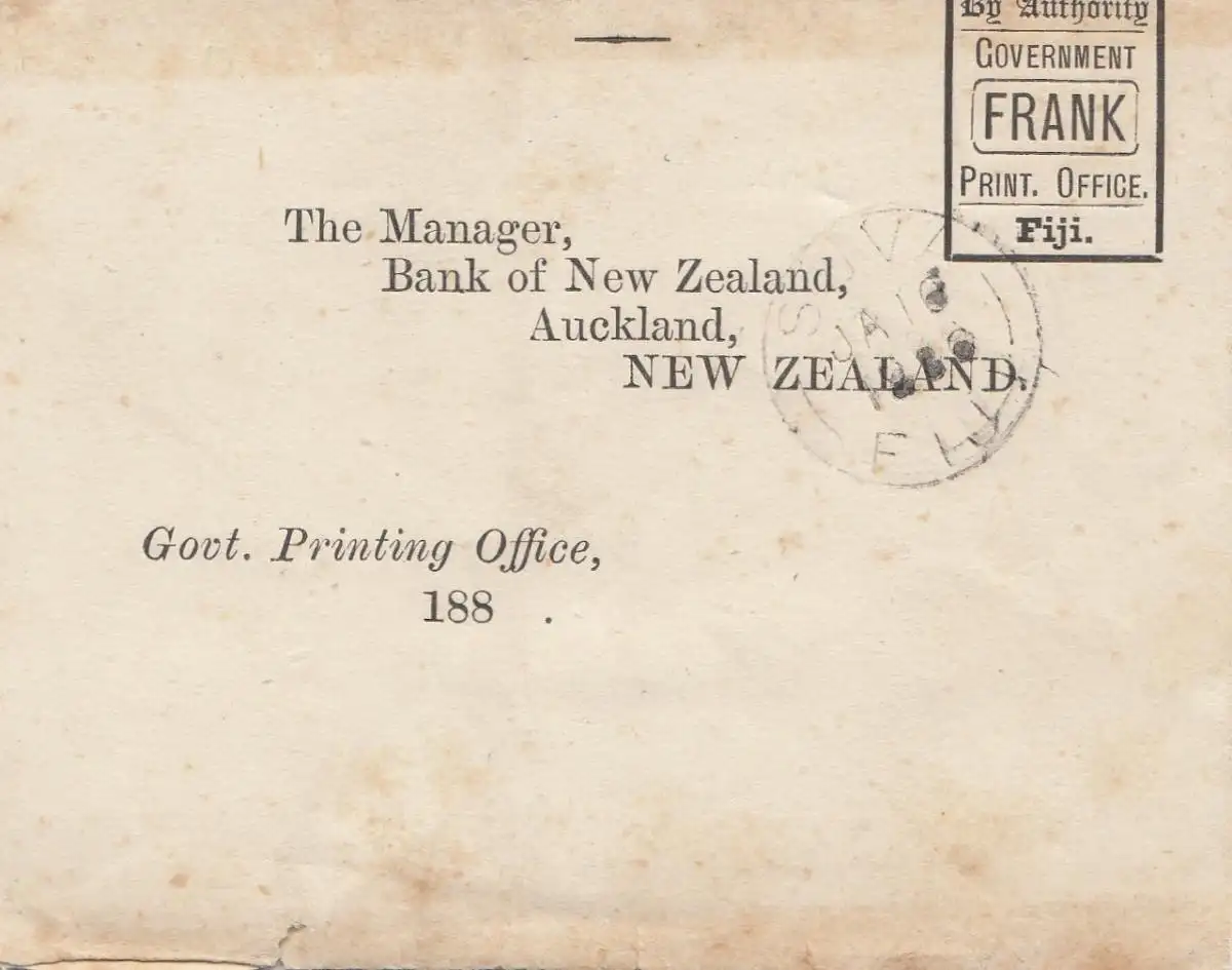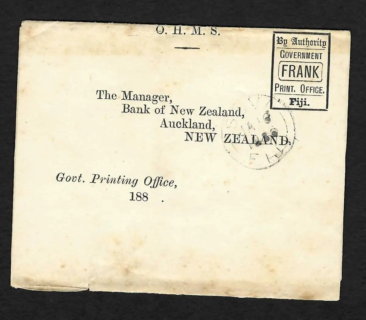 Fiji: wrapper to New Zealand, by authority Government Frank; O.H.M.S. on top