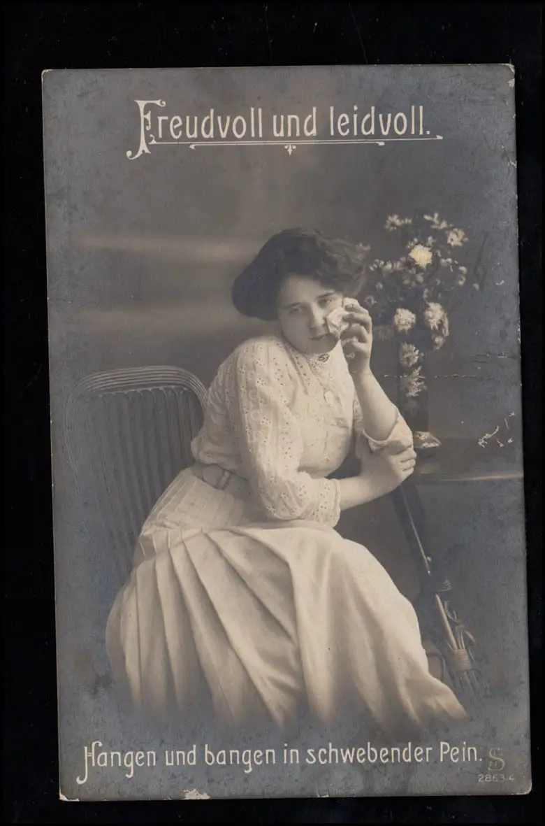 Fille d'amour-AK avec mouchoir - Frédéric et pathétique BONJOUR vers 1912