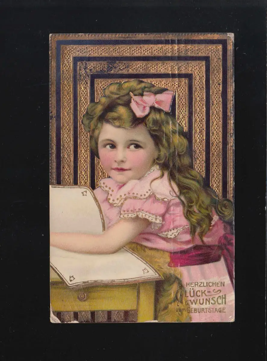 Fille robe rose boucle avant lettre, Félicitations, anniversaire Hambourg 19.6.1911