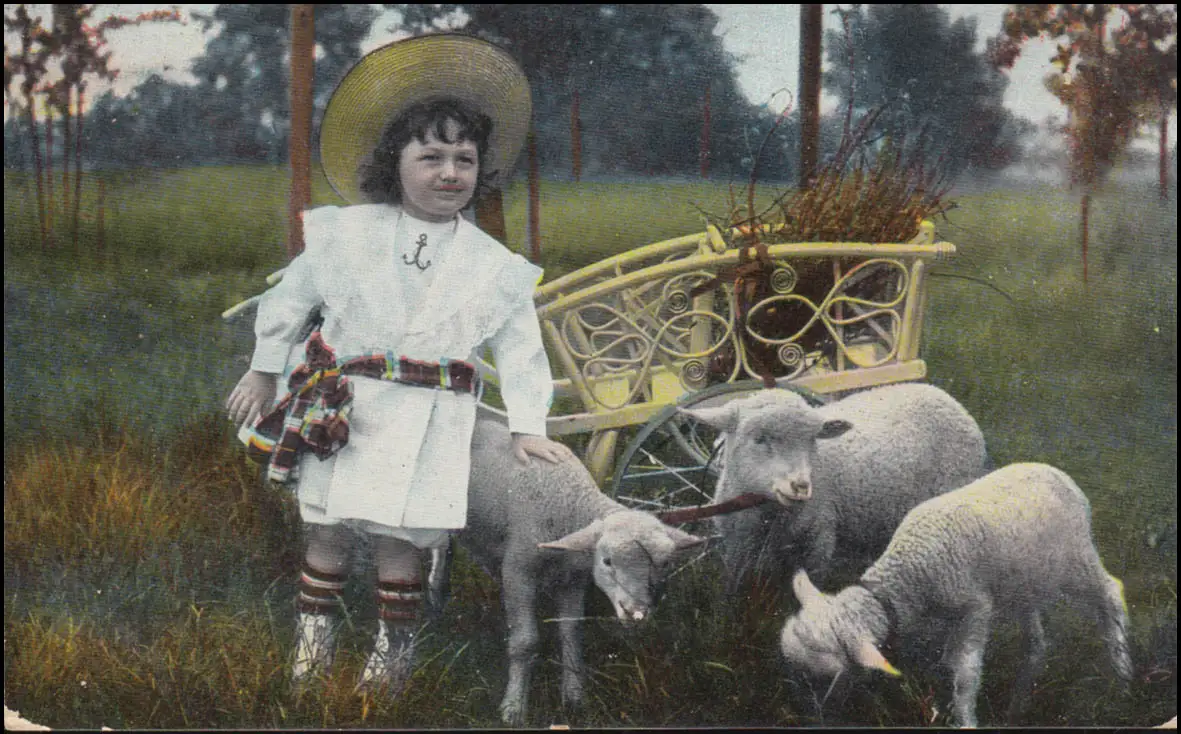 Filles AK animal en robe de marin avec moutons, ANTWERPEN / ANVERS 24.6.1907