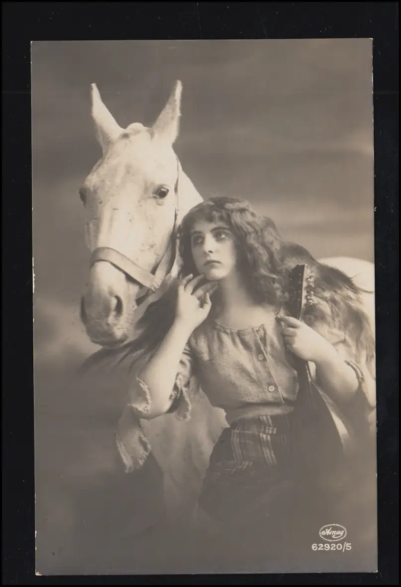Filles d'amour-AK avec mandoline et cheval, DENCHDEN (Kr. LIND,HANNOVER) 12.2.26