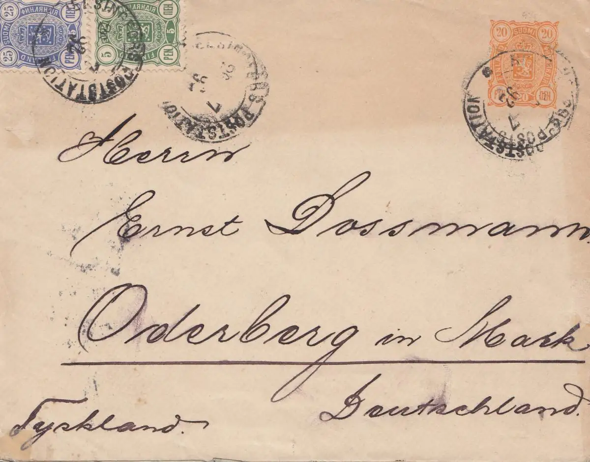 Finlande: 1892: Helsinki vers l'Allemagne