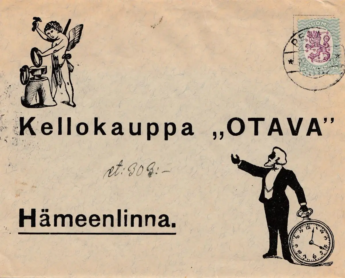Finlande: 1928: après Hämeenlinna; Horloge, Ange, forgeron, anneau