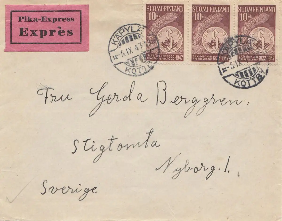 Finlande: 1947: Eilboten/Express de Käpylä vers Suède