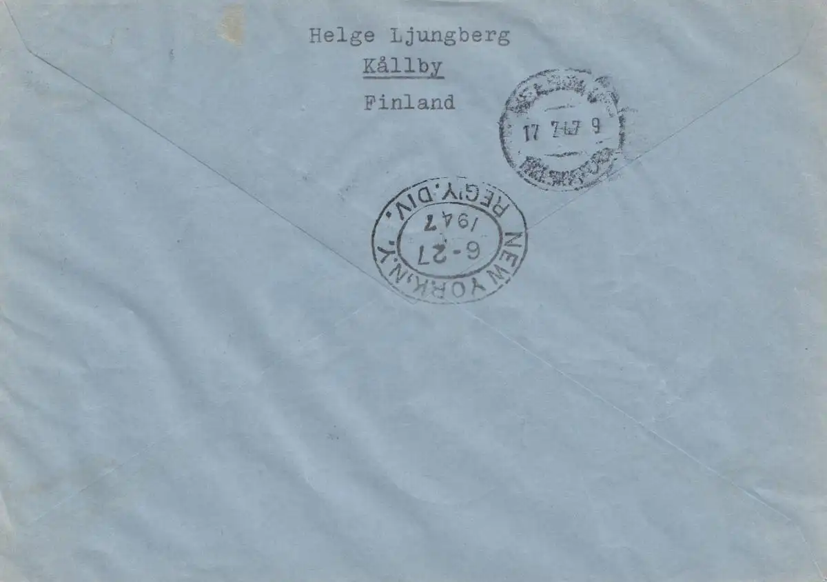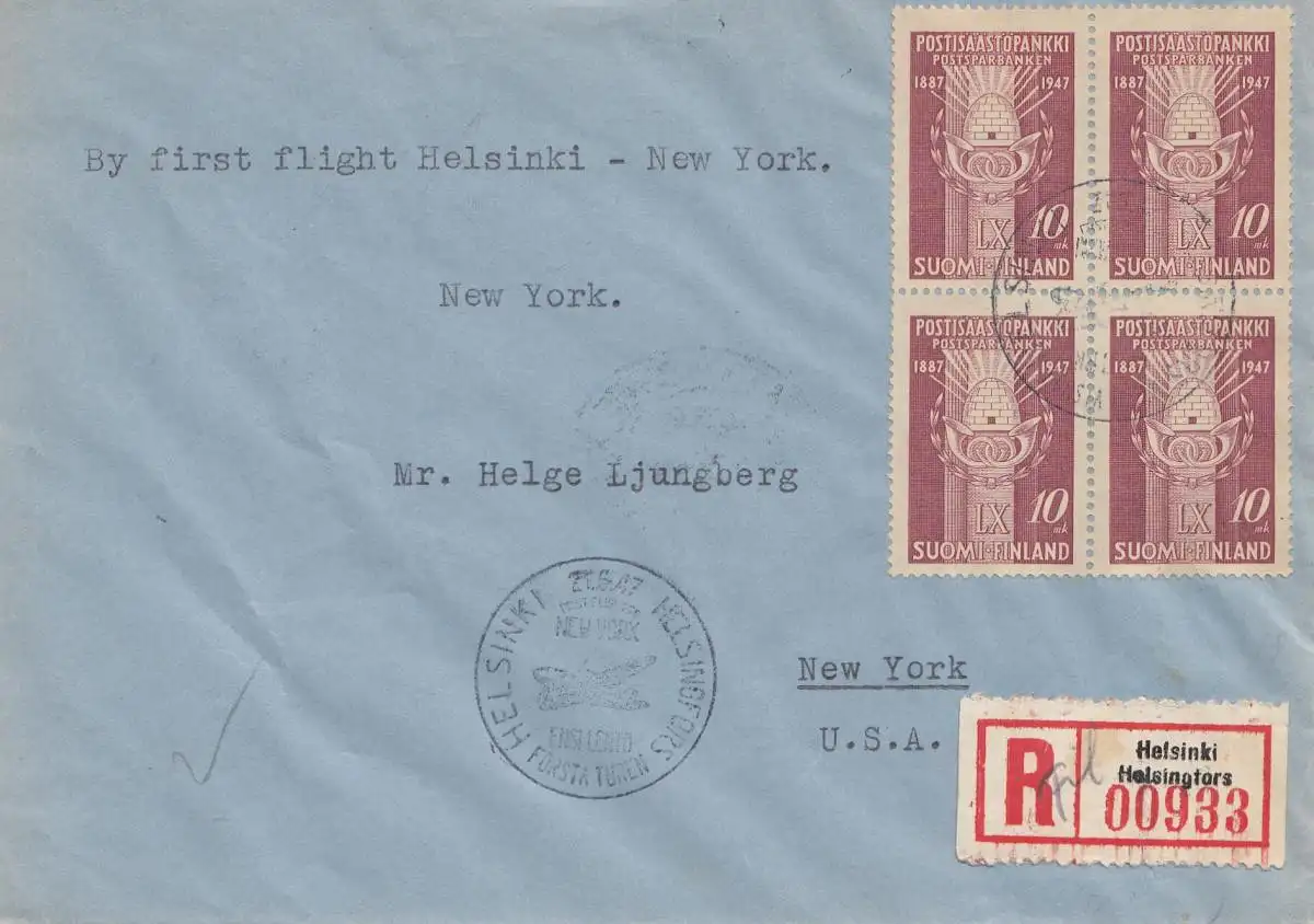 Finlande: 1947: lettre recommandée / Aéroport d'Helsinki vers les États-Unis