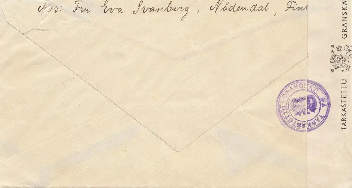 Finlande: 194x Lettre de Nädendal à la Suède - censure