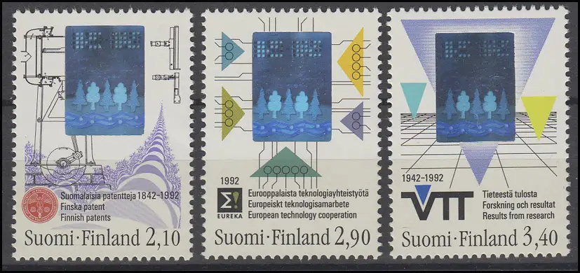 Finlande Hologramme Inventions & Technologies & Recherche 1992, 3 valeurs, ensemble **