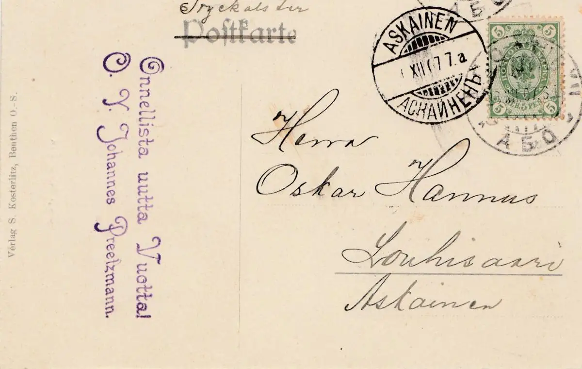 Finlande: 1907: Carte de vue Stephan Fix d'après Askainen