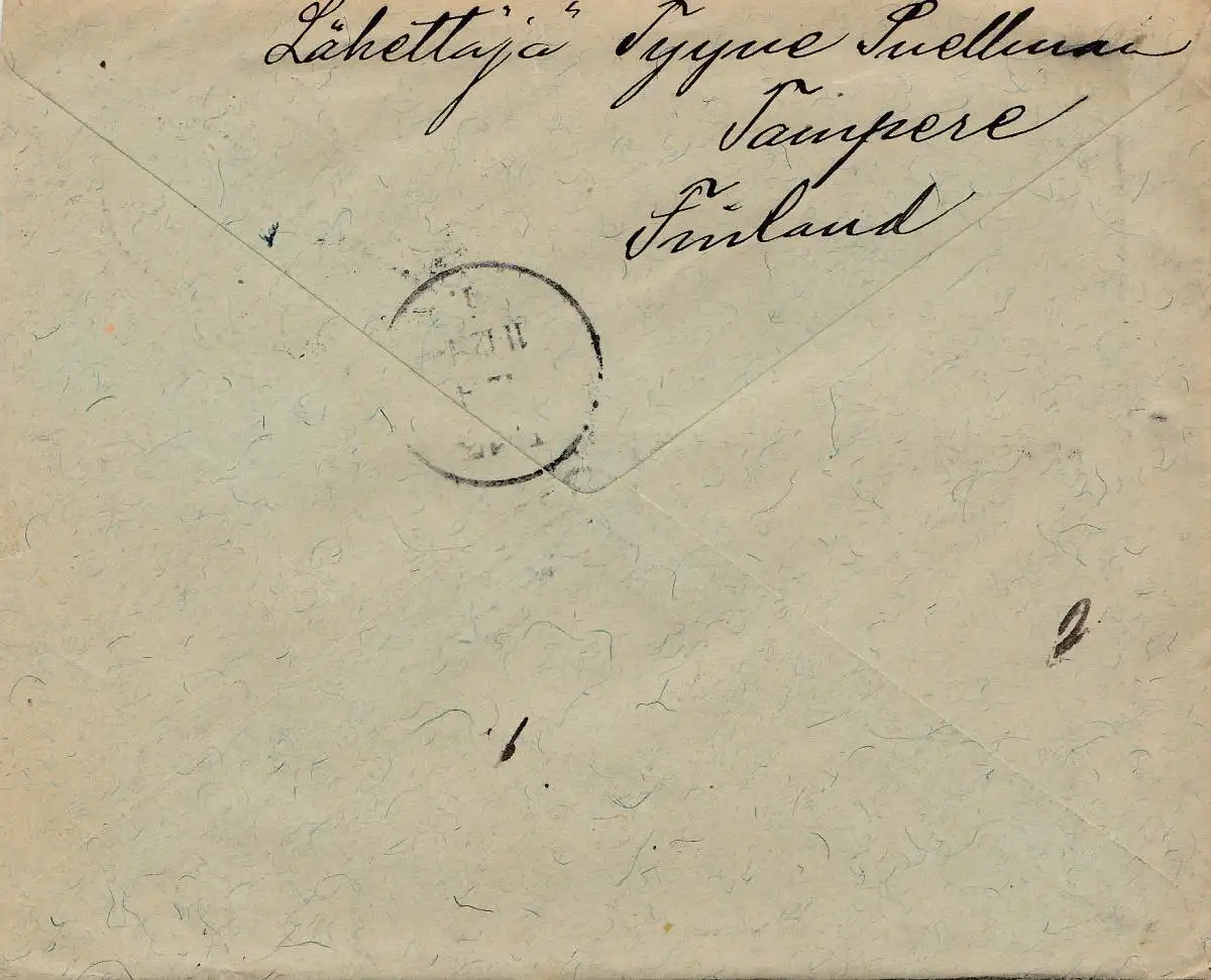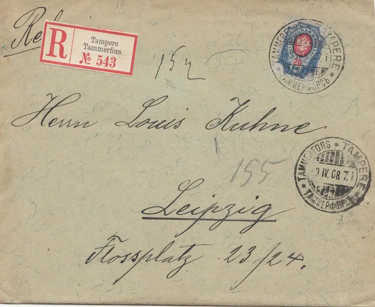 Finlande: 1908: Lettre recommandé à Tampere vers Leipzig