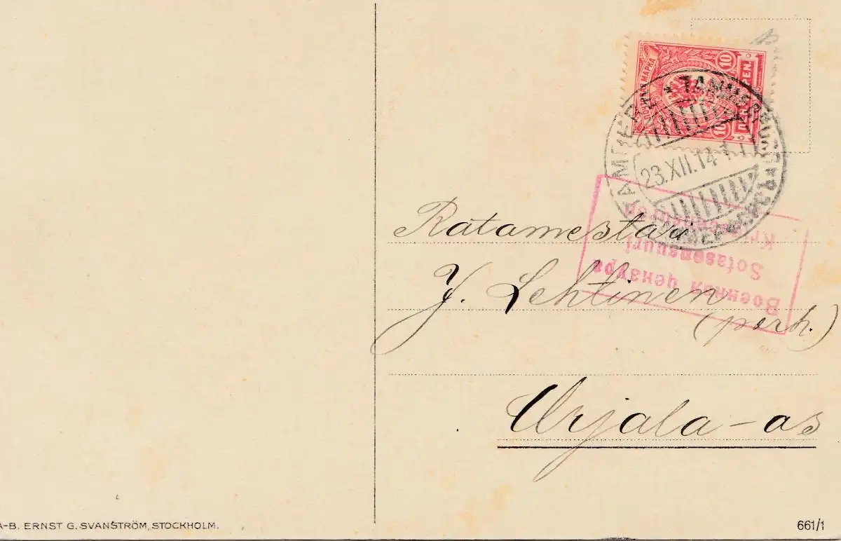 Finlande: 1914/15: Carte Hauskaa Joulia: porc/enfant