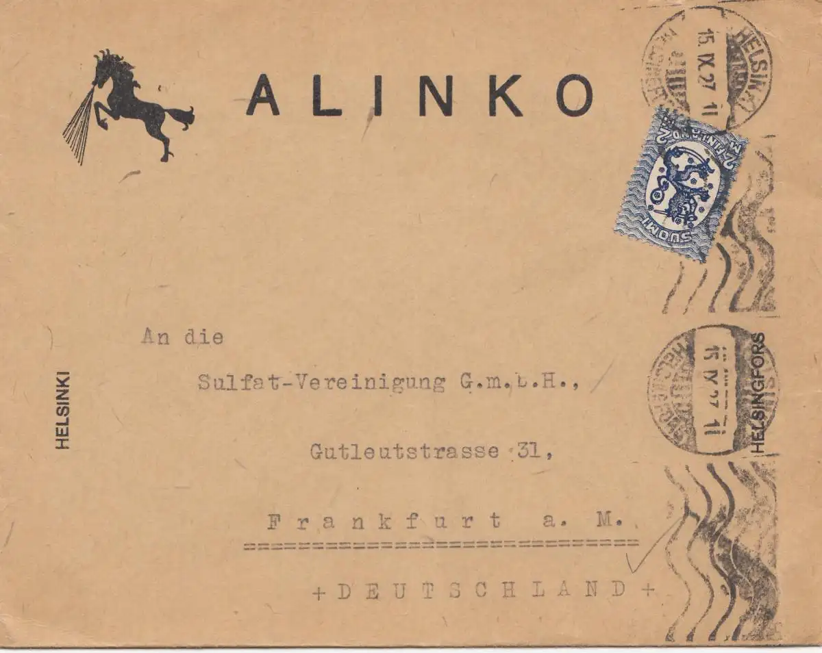 Finlande: 1927 Helsinki vers Francfort/M - Cheval