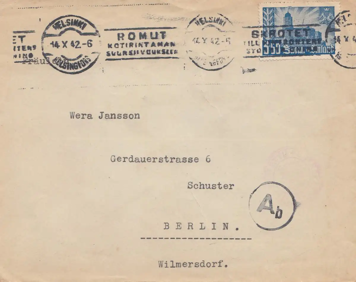 Finlande: 1942: Lettre d'Helsinki à Berlin-OKW Censure