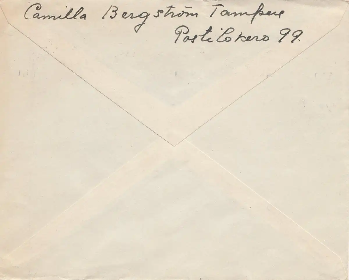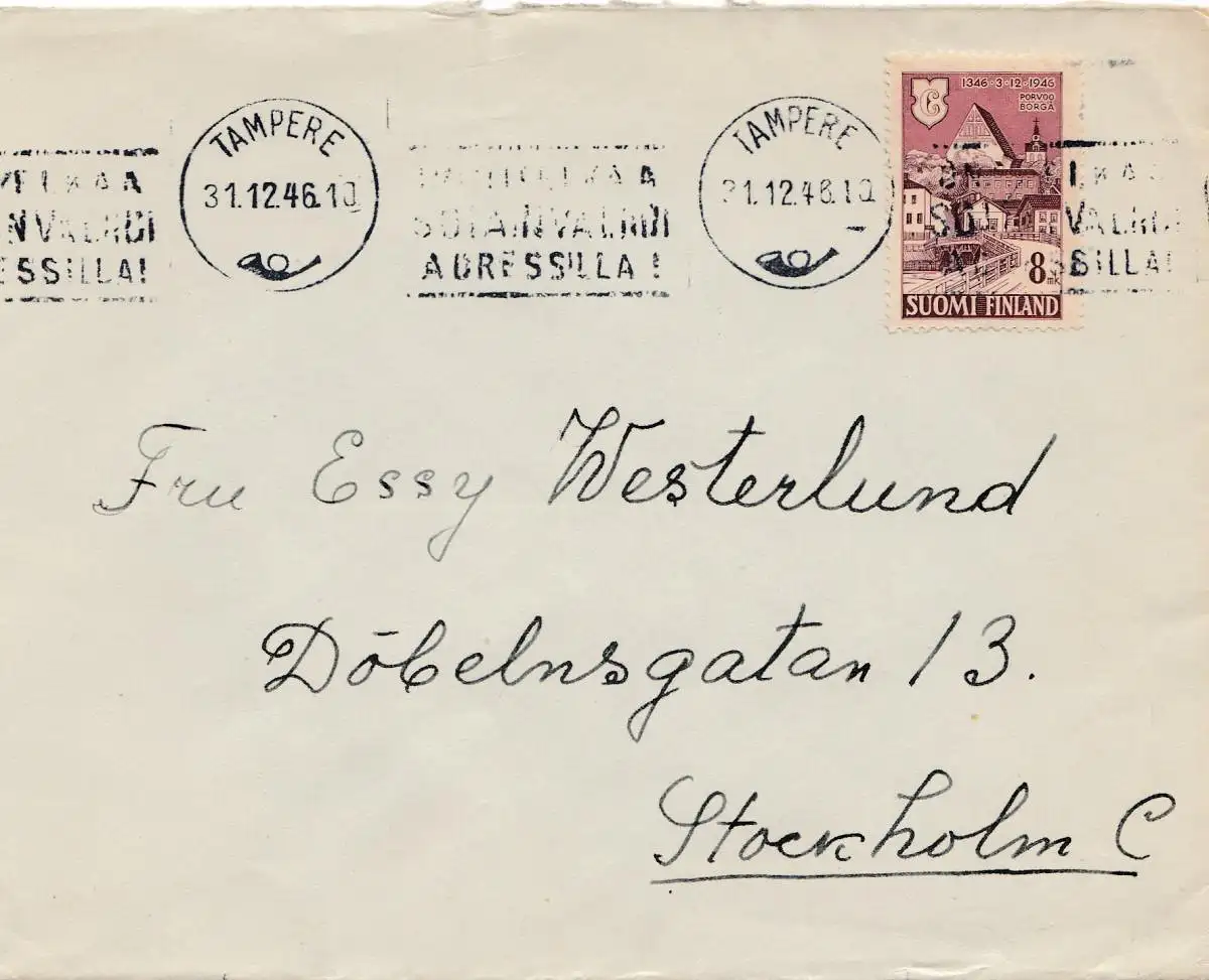 Finlande: 1946: Lettre de Tampere à Stockholm