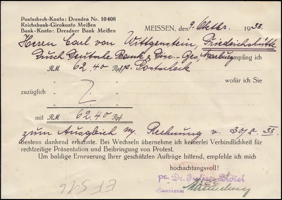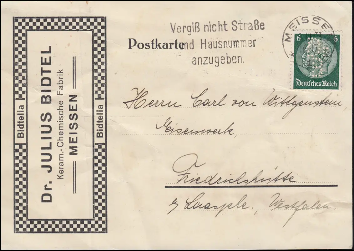 Trou de société Dr B sur Hindenburg 6 PFE sur carte postale à distance MEISSEN 9.10.33