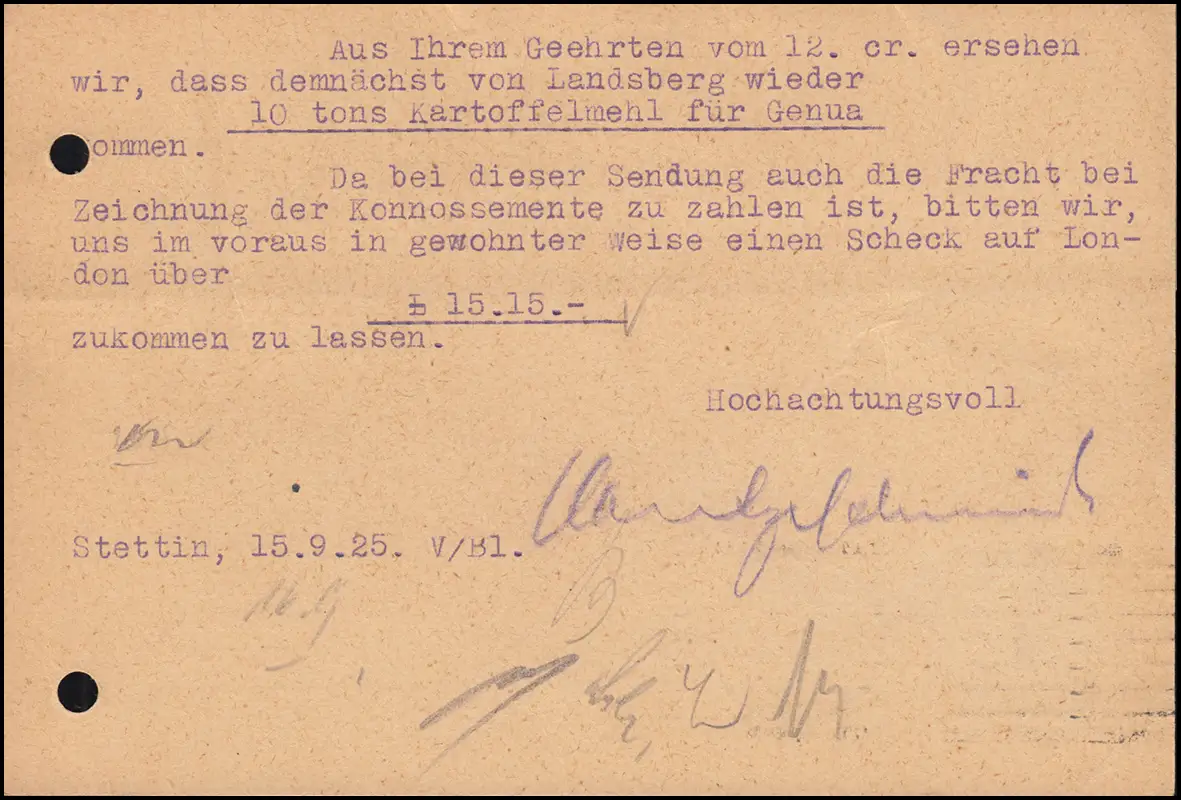 Carte postale à Porto à longue distance de la société Hautz & Schmidt Spedition, stockage, assurance à Szczecin aux usines de fécule et de sirop AG à Brandebourg / Havel. - Avec l'adressage selon la figure. N° de catalogue: 356 Examen: original Numéro d'article: 00000000033211>Note: Cet article n'est disponible qu'une fois. Vous recevrez exactement l ' article illustré.
