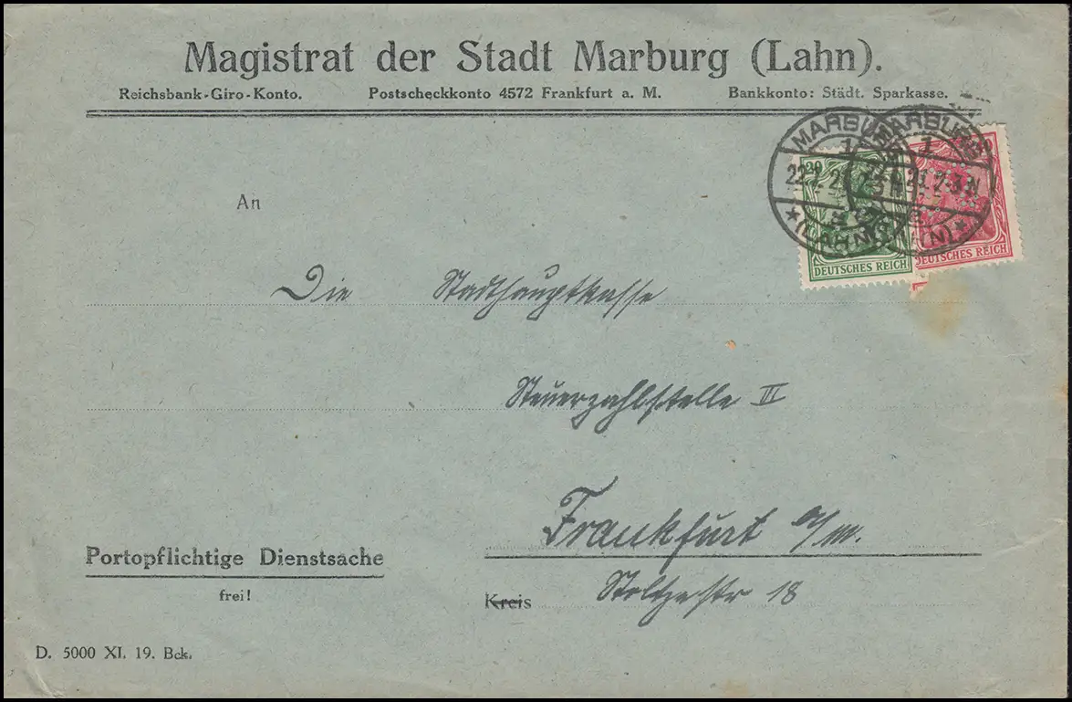 Affaire de service à Portopflichige du Magistrat de la ville de Marburg (Lahn) après Francfort Examen: original Référence produit: 00000000032267