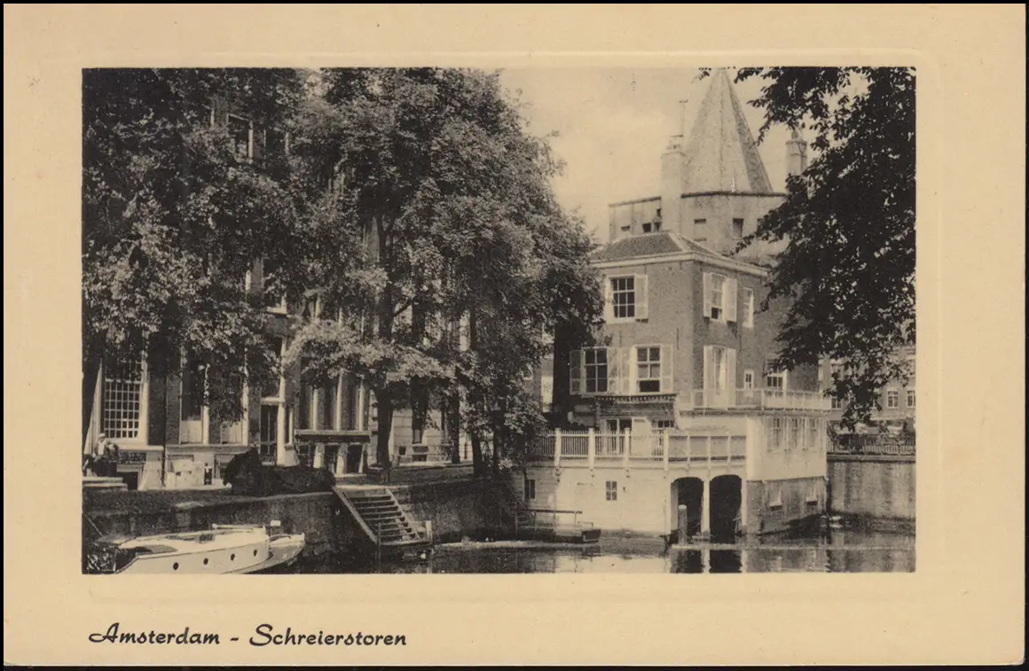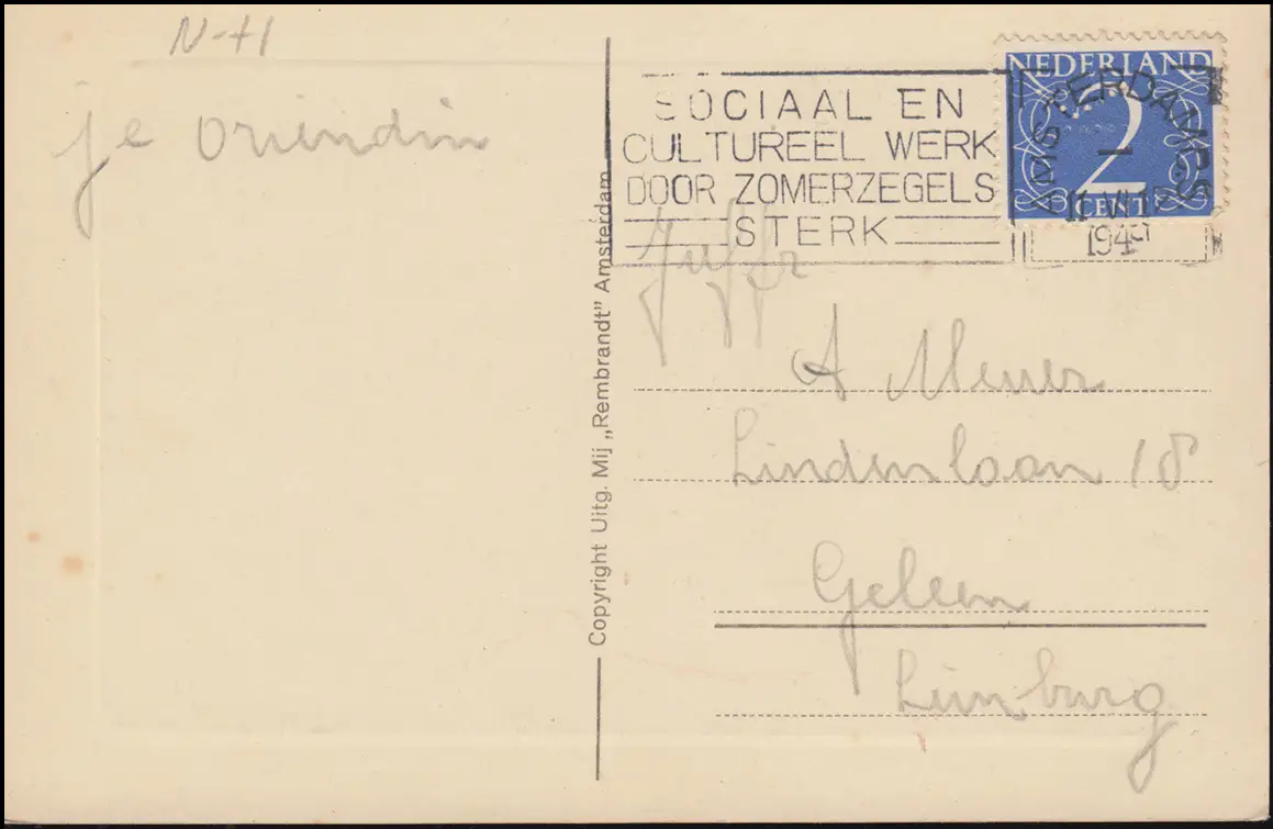 Trou de l'entreprise/Perfin K à 469 chiffres sur les portes de crieur AK, AMSTERDAM 11.6.48