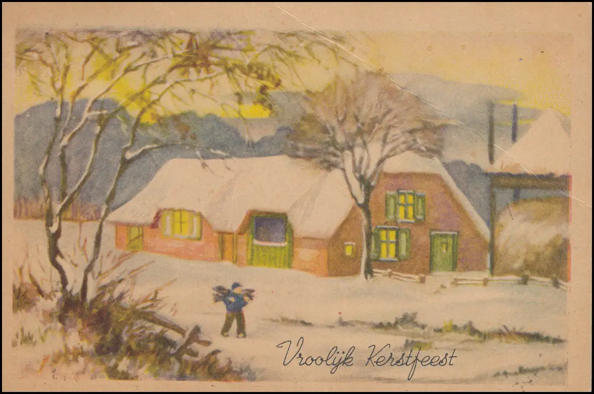 Trou de l'entreprise/Perfin K à 469 chiffres sur AK Noël, AMSTERDAM 24.12.46