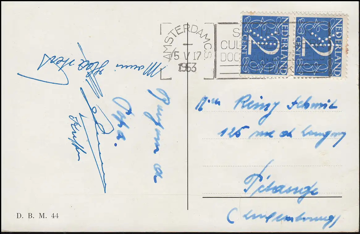 Trou de l'entreprise/Perfin K à 469 chiffres en couple sur les costumes AK, AMSTERDAM 5.5.53