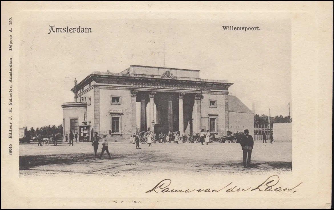 Trou de l'entreprise/Perfin K à 50 chiffres EF sur AK Willemspoort AMSTERDAM 9.9.1901