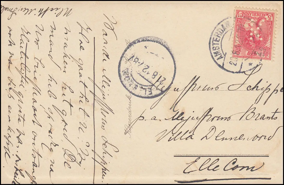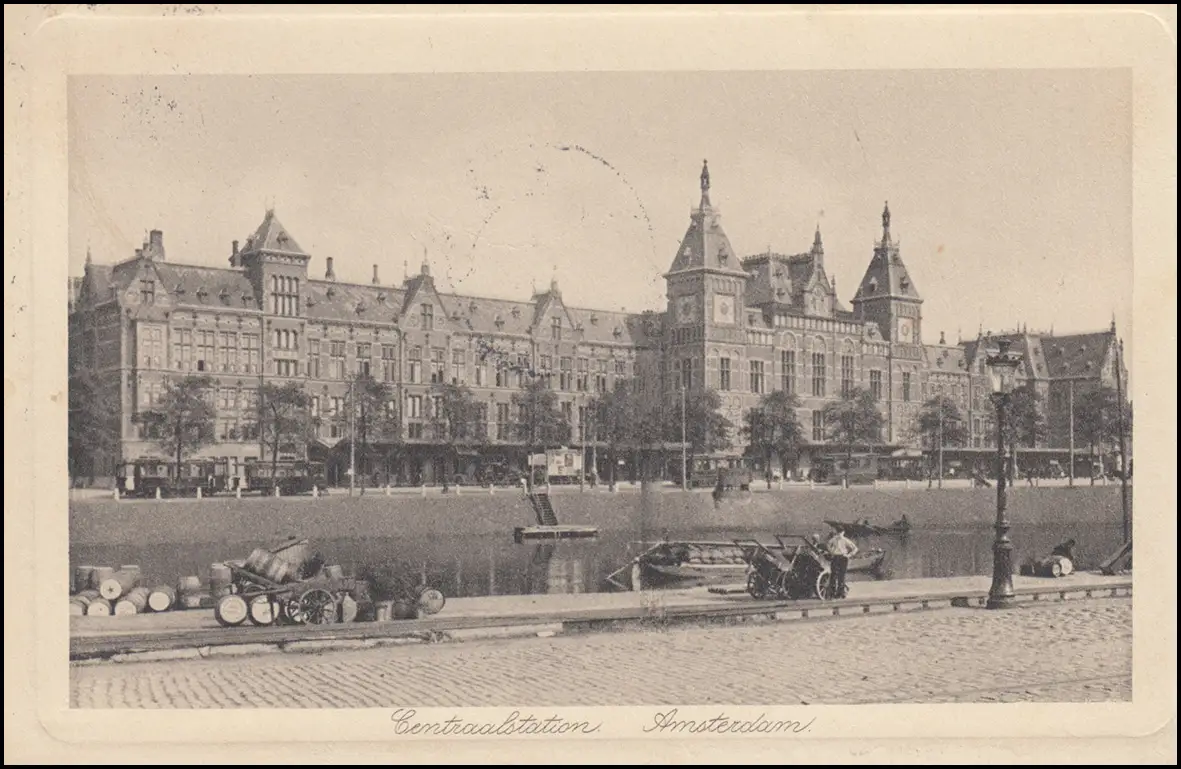 Perforation/Perfin K sur Wilhelmina 3 Cent AK Centralstation AMSTERDAM 20.8.12