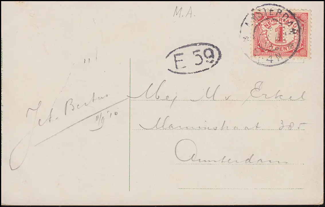 Trou de l'entreprise/Perfin M.A. tête à 50 chiffres sur AK, AMSTERDAM 1911