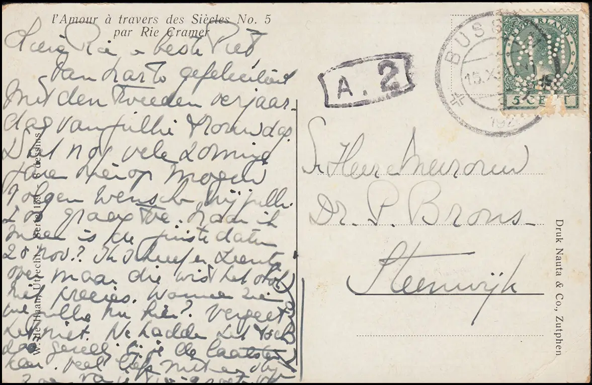 Trou de l'entreprise/Perfin N.K. & Co à 151 Wilhelmina AK La Colline, BUSSUM 15.11.28