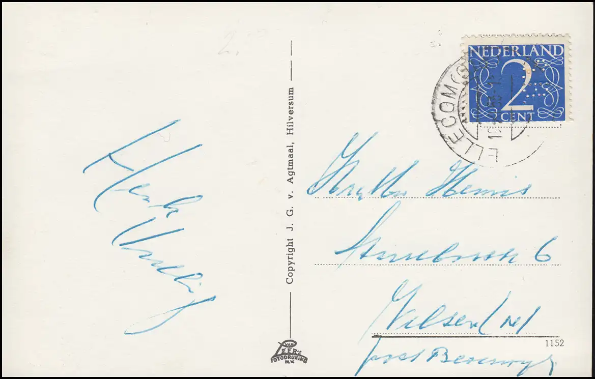 Trousse d'entreprise/Perfin S.B. à 469 chiffre, AK salutation d ' Arnheim, ELLECOM 19.11.53
