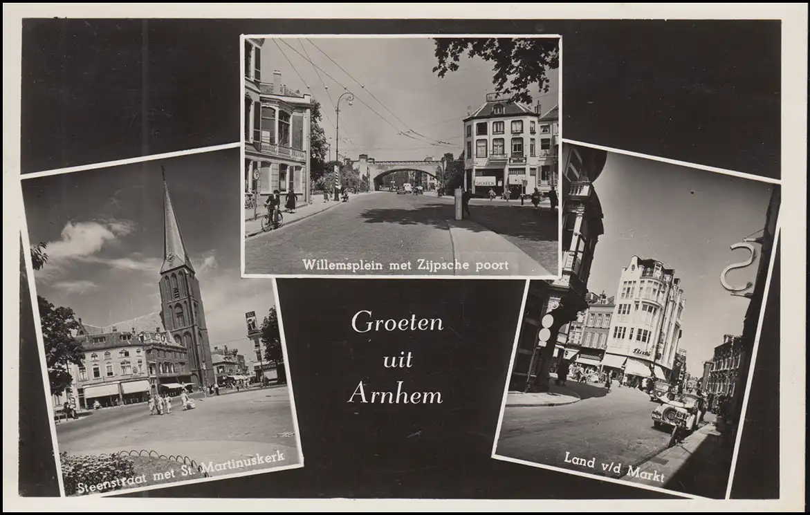 Carte d'affichage "Groeten uit Arnhem" avec 3 vues Numéro de catalogue: 469 Examen: original Référence produit: 00000000023393