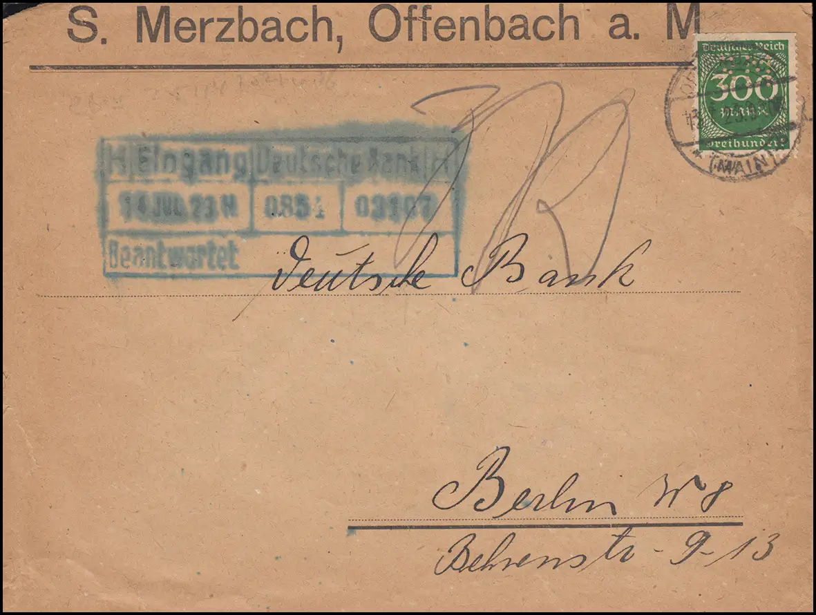 FAQ à la Deutsche Bank de Berlin avec cachet d'entrée 14.7.23, porte-report endommagée Numéro de catalogue: 270 Examen: original Référence produit: 00000000034589>P>Remarque: Cet article n'est disponible qu'une seule fois. Vous recevrez exactement l'article représenté.