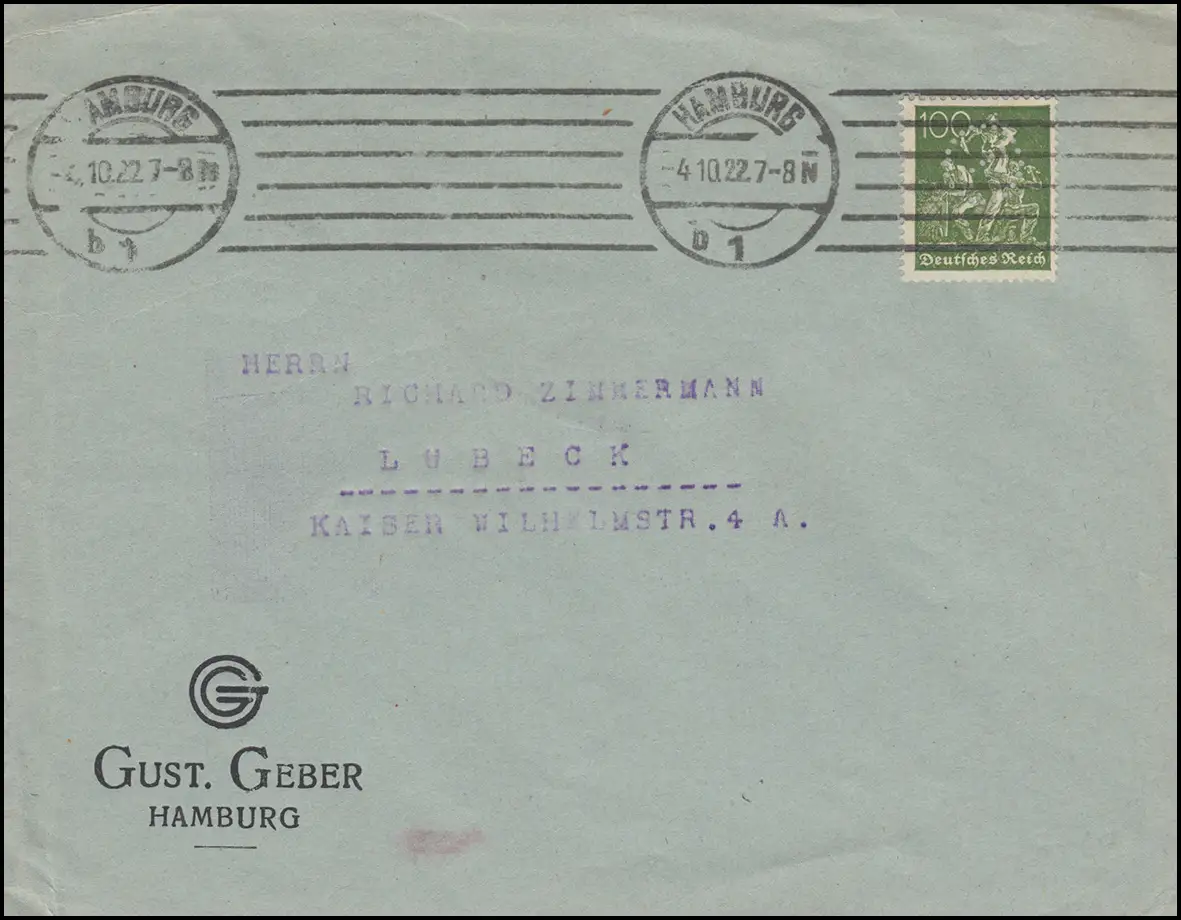 Envois de presse de Gustav Geber Hamburg vers Lubeck Numéro de catalogue: 187 Examen: original Référence produit: 00000000034833
