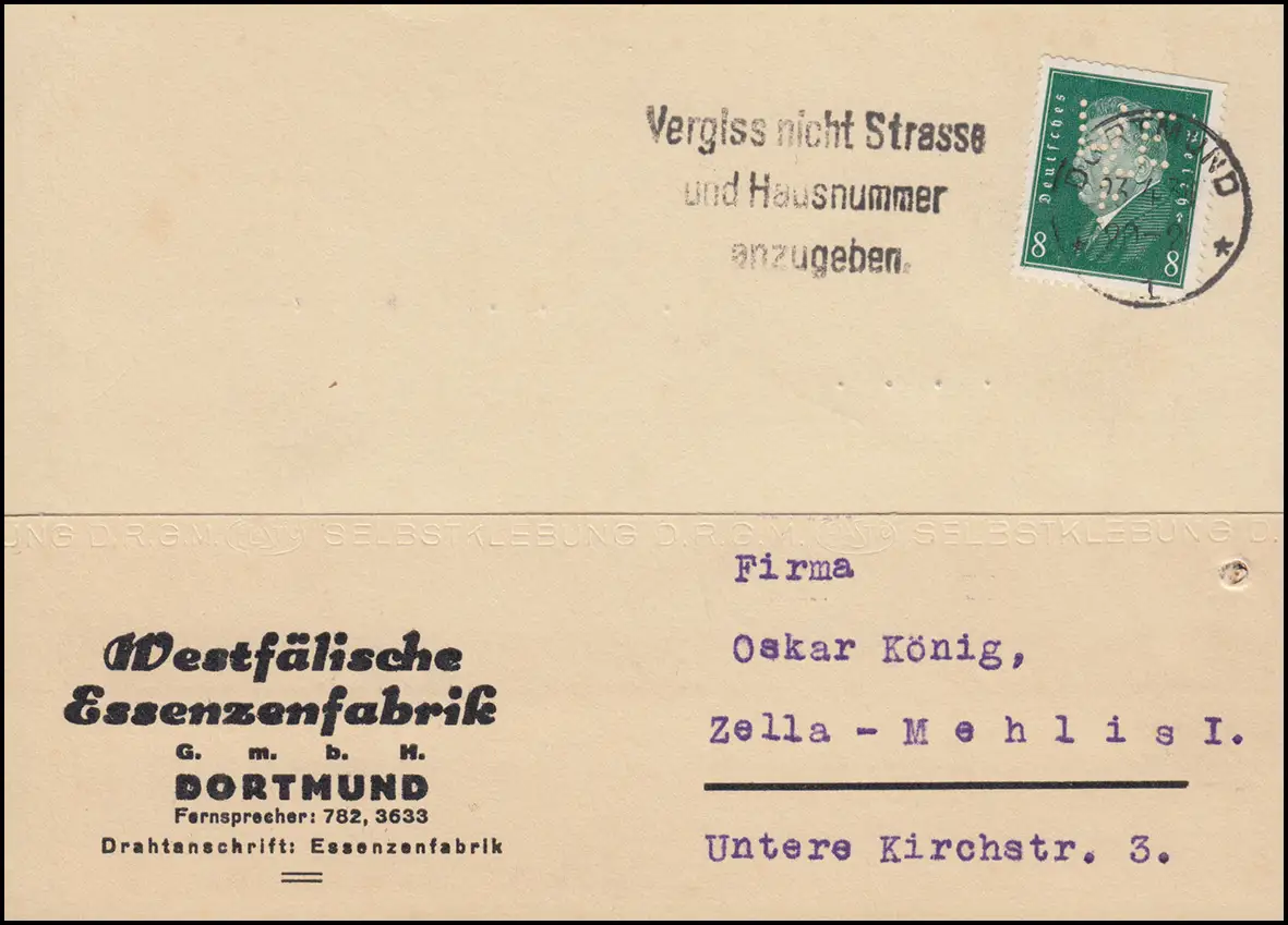 Trou de l'entreprise WEF sur Ebert 8 Pf. en tant qu'EF, carte postale DRTMUND 23.4.30