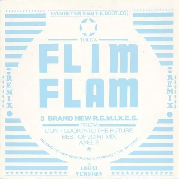 12" Maxi Flim Flam Gang - Joint Mix Remix Volume II, 3 Brand New R.E.M.X. E.S.; Info, État Platte M- Hülle VG+; Fabriqué en Germany 1988 Streetheat CEM 101/AXEL, DUM 633540, Tracks The Best Of Joint Mix [Oh No! Not Another R, M.I. X] 5:58, Don't Look Into The Future [Futuristic Mix] 5:25, Axel F. [Hotter Than Hell Mix) 6:02