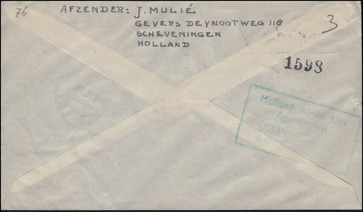 Avec le cachet vert "Holland Africa Lijn / Agentschap / Johannesburg / 8 octobre 1946." N° de catalogue: 442+467 Examen: original Référence produit: 00000000034362>p>Note: Cet article n'est disponible qu'une seule fois. Vous recevrez exactement l'article représenté.