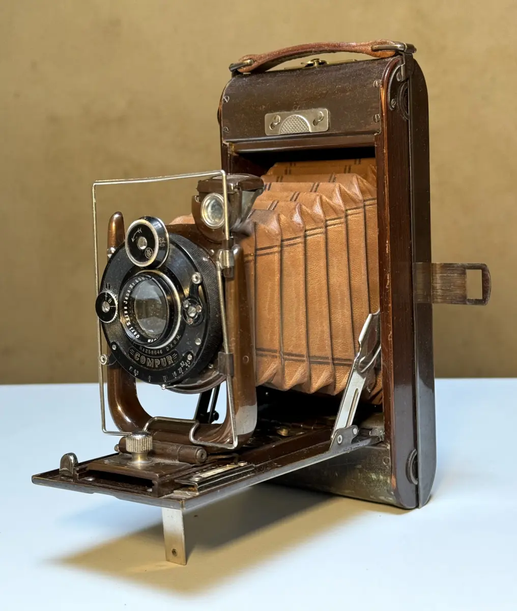 Houghton a produit de très beaux foldings tropicaux, tous caractérisés par un revêtement "en cuivre oxydé " (bronze Florentin d'après Mc Keown, donc un laiton à 85 % de cuivre et 15 % de zinc) et soufflet cuir havane.