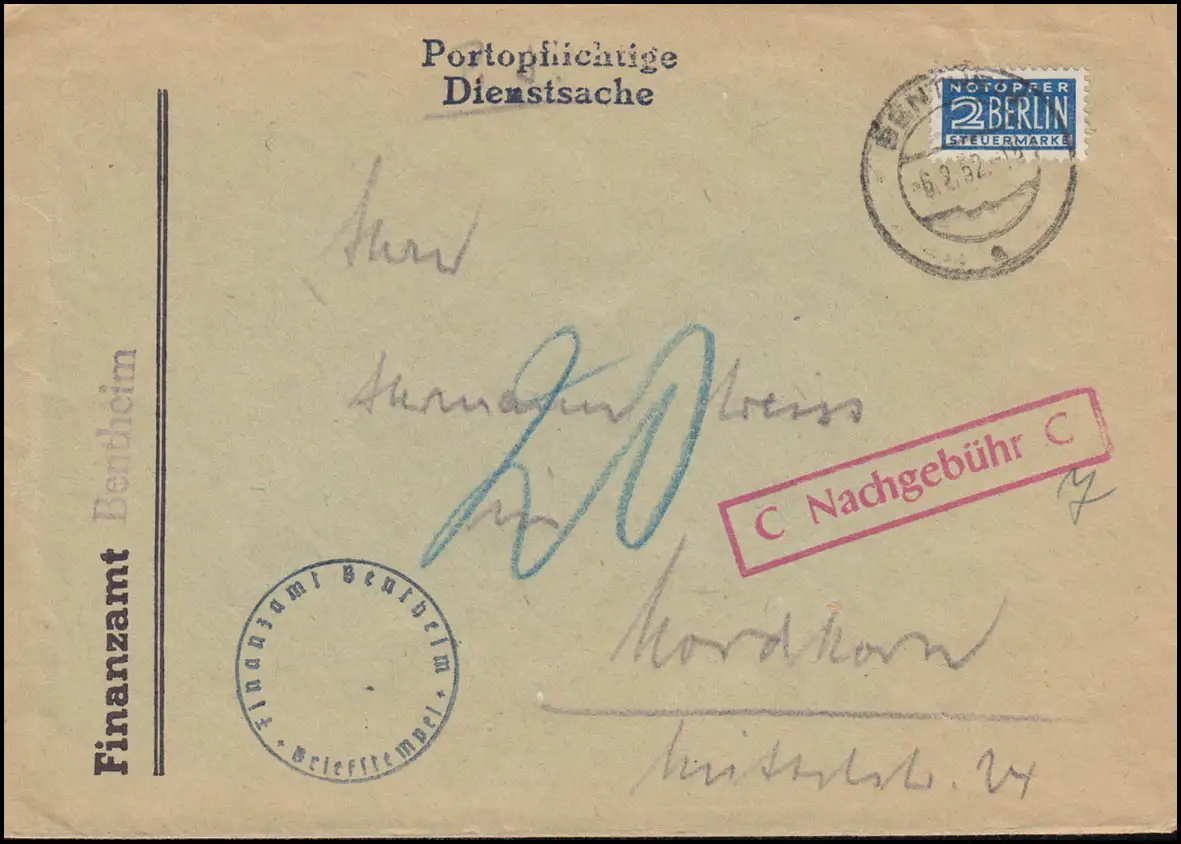 Fonction publique à charge du bureau des impôts BENTHEIM 6.2.52 timbre aptisé