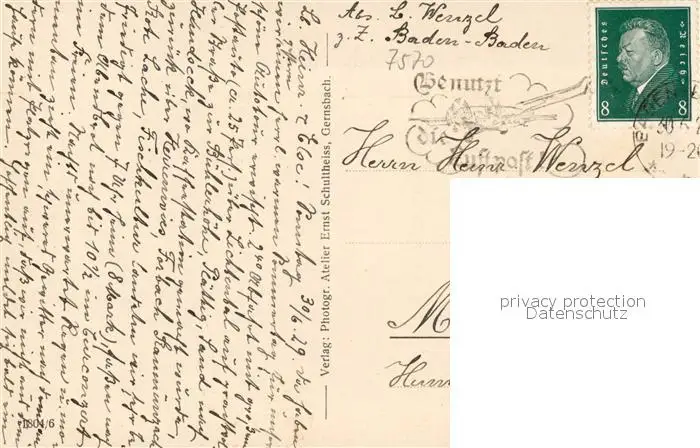 Forbach_Baden Waldhaus Rote Lache Forbach_Baden postalisch gelaufen 1929 Erhaltung siehe scans [PaolaD17] PaolPID1