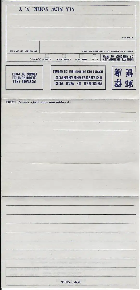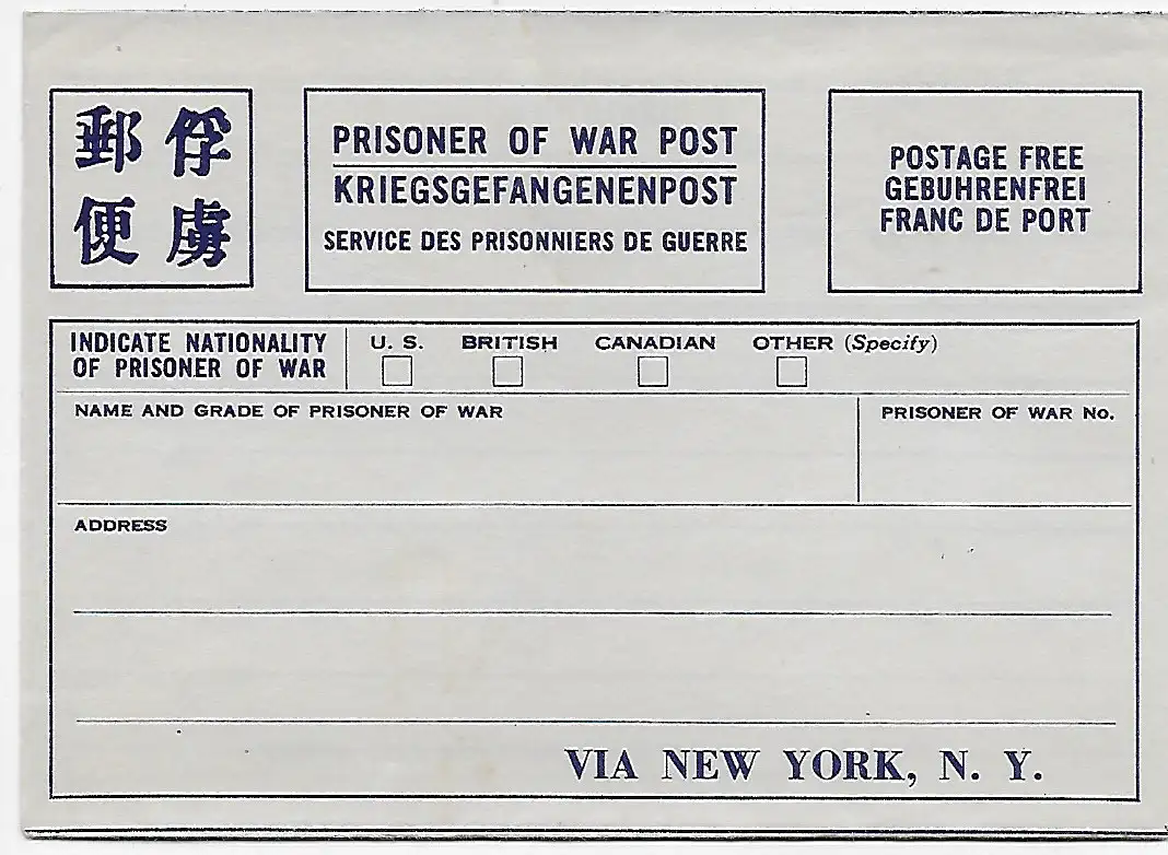Formulaire: Prisoner of War, Poste de prisonniers de guerre: Kgf POW - via New York